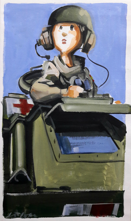 Pese a su juventud tiene una fuerte personalidad. Es orgullosa y sabe que el vehículo es su responsabilidad; y así fue hasta el último día. Su blindado era el BMR ambulancia y de él iban a depender muchas vidas. No solo era conductora, también era sanitaria y estaba donde la misión se lo exigía; estuvo peleando por salvar vidas desde que llegó hasta que se fue. Los cuatro componentes del equipo médico, mientras esperan nuevas órdenes, recuerdan la tarde que un coche “suicida” se empotró contra uno de los BMR del convoy, hiriendo a varios soldados de la Coalición, y cómo les atendieron. Era la primera vez que se enfrentaban a una situación como esa; Idoia los trató con tal ternura que parecía que había estado haciendo eso toda la vida.