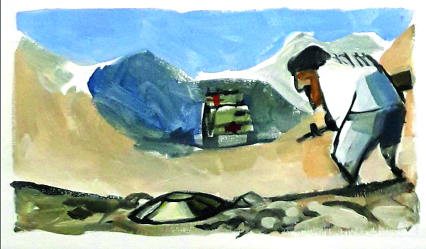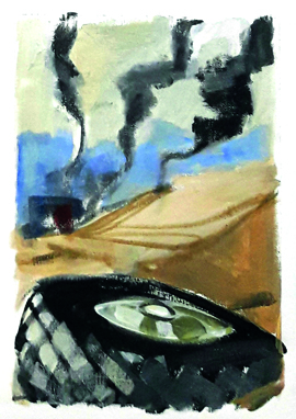 El terreno es riguroso con el movimiento. Los insurgentes no descansan. Tampoco Idoia, que permanece alerta mientras el convoy circula por un camino paralelo a la carretera 515. Al llegar a la altura del aeropuerto de Shindand toman una ruta alternativa, la carretera que une la 515 con el aeropuerto. Ella se siente como si fuese la primera mujer que pisa esa tierra. Lo es, porque esa tierra cambia cada día, supura nuevas historias de guerra cada hora y llena el aire de un silencio diferente cada amanecer. Su misión es asegurar el movimiento del vehículo y llegar lo antes posible al lugar de los combates para ayudar a los heridos y sacarlos de la zona de muerte. No queda mucho para que den las cuatro de la tarde en el valle de Zirku.
