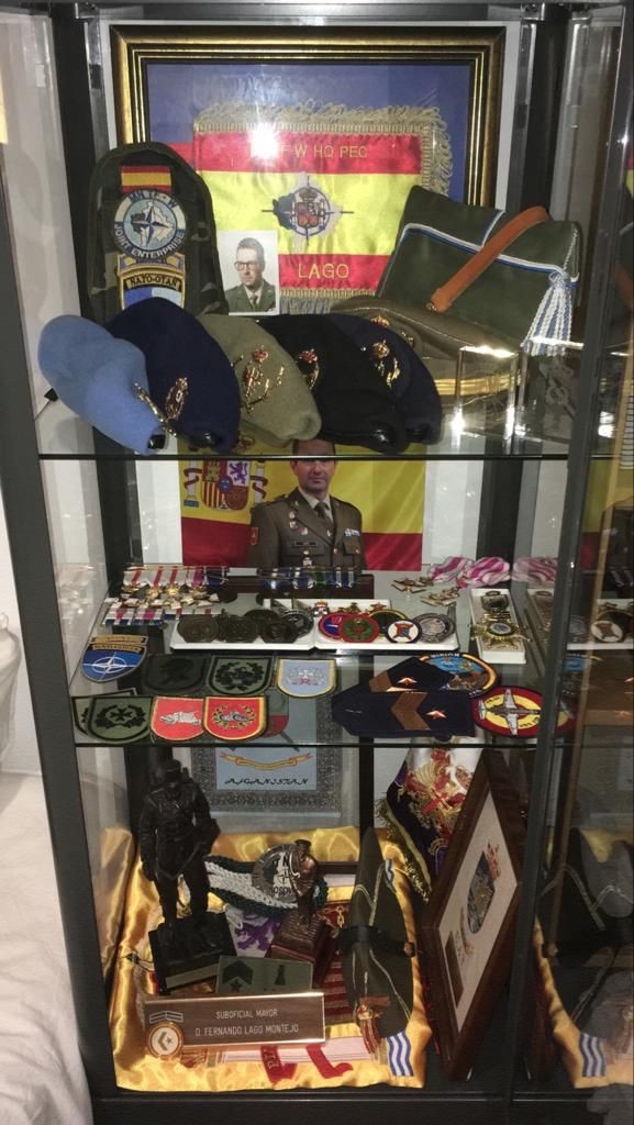 Participaste en las misiones internacionales de Kosovo, Irak, Afganistán y Líbano, formado parte del contingente español, bajo el auspicio de Naciones Unidas, porque querías servir a España y transmitir los valores castrenses fuera de nuestras fronteras. Tu trayectoria profesional se ha visto recompensada con una brillante Hoja de Servicios y has sido propuesto en diferentes ocasiones por tus Superiores a diferentes recompensas militares. Fruto de este reconocimiento a tu trayectoria profesional, tus hijos, han expuesto en una vitrina acristalada dedicada a tu memoria esas condecoraciones junto con otros efectos militares de tu pertenencia.