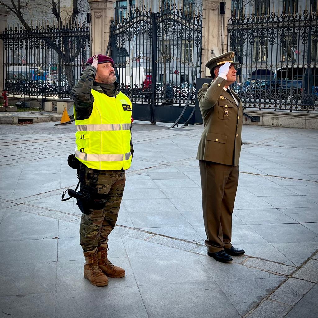 Eran las 7:50 de la mañana y se encaminó con su uniforme de especial relevancia hacia el cuerpo de guardia de la calle Alcalá con la intención de despedirse de su bandera después de tantos años. Lo sentía como un momento especial. Quería estar presente cuando la guardia comenzase a izar la bandera.