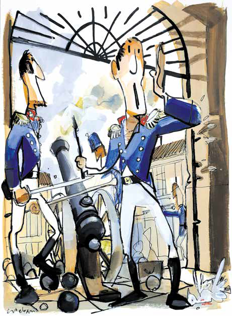 A raíz de los hechos del Dos de Mayo de 1808 en Madrid, dos capitanes de la Artillería española escribieron páginas de gloria en nuestra historia como héroes. El capitán Daoíz, a la voz de «las armas al pueblo», armó a la muchedumbre agolpada a las puertas del Parque de Monte-león y, junto al capitán Velarde, organizó la defensa del mismo, mientras en las calles los vecinos de Madrid luchaban contra los franceses. Dos capitanes que como bravos salieron en defensa del pue-blo que sufría el acoso del invasor.