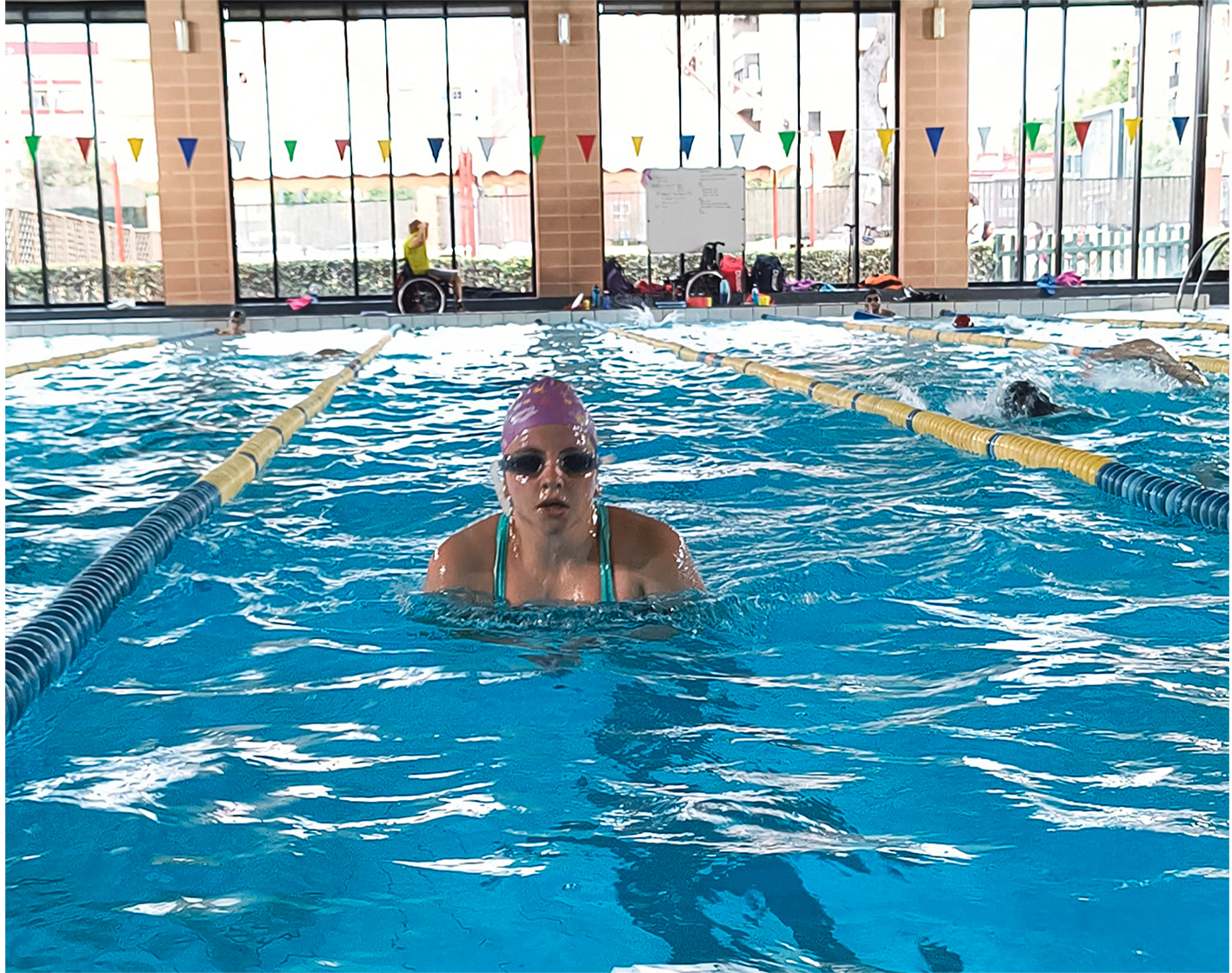 Así, compite en natación en la categoría S14, destinada a nadadores con discapacidad intelectual, tanto a nivel autonómico como nacional. Además, el año pasado alcanzó un gran hito al coronarse campeona de España en baloncesto con el Club Aderes Burjassot, equipo en el que se inspira la aclamada película Campeones (2018) de Javier Fesser. Esta victoria es una de las que Noelia recuerda con más cariño, así como su participación en el Campeonato Autonómico de Castellón, donde logró un segundo y tercer puesto en 50 m y 100 m estilo braza, respectivamente. Unas experiencias que siempre vive con ilusión y muchos nervios: «Me pongo muy nerviosa porque soy muy competitiva y siempre quiero bajar mis tiempos».