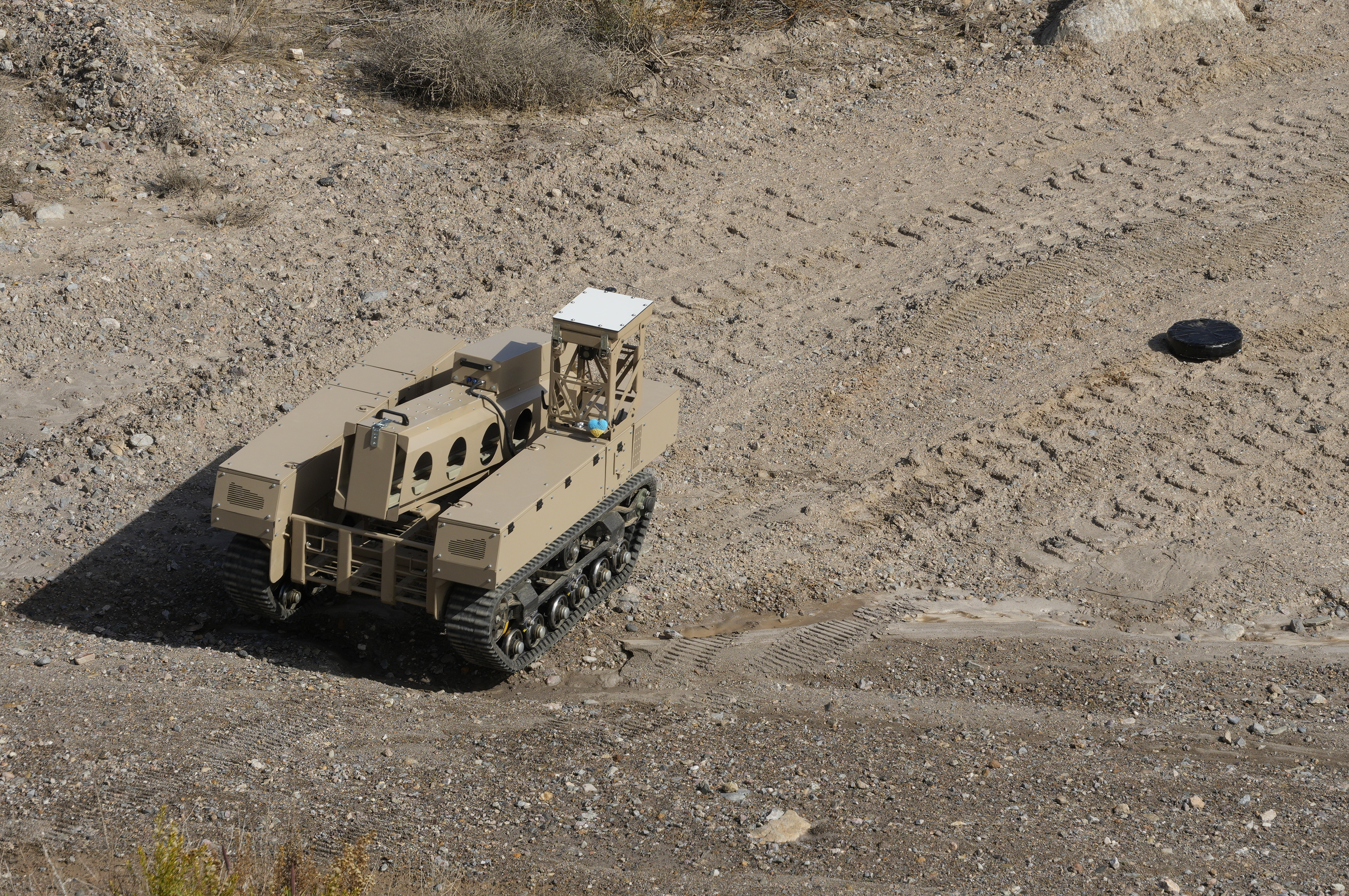 Uno de los puntos fuertes del ejercicio fue el lanzamiento de varios UGV armados, una oportunidad que no se ve en los campos de maniobras del Ejército de Tierra todos los días. Equipado con 300 cartuchos de 7,62 mm, el UGV mostró la capacidad de hacer fuego a distancias cercanas a 1000 metros. También se montó sobre un cuadrúpedo un fusil HK para evaluar la estabilidad de tiro del robot, su precisión y su capacidad para operar en escenarios con interferencias o movilidad restringida.