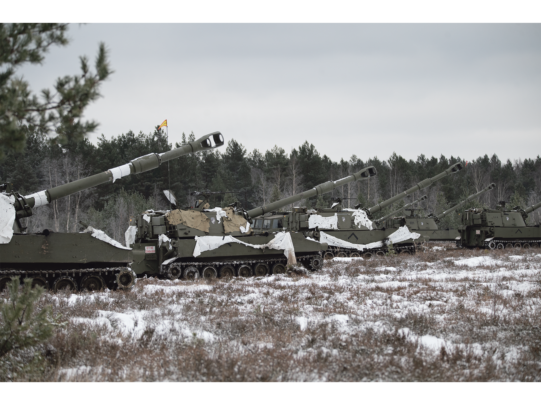 En la estructura de la MNB-LVA, además del MNBG —desplegado de forma continuada desde 2017—, se integra el Multinational Artillery Battalion (MN ARTY BN), la batería de artillería aliada. Ambas unidades han sido protagonistas de la intensa secuencia de ejercicios desarrollados durante uno de los inviernos más duros de las últimas décadas en la región báltica, donde el frío extremo se ha convertido en un elemento más del adiestramiento.