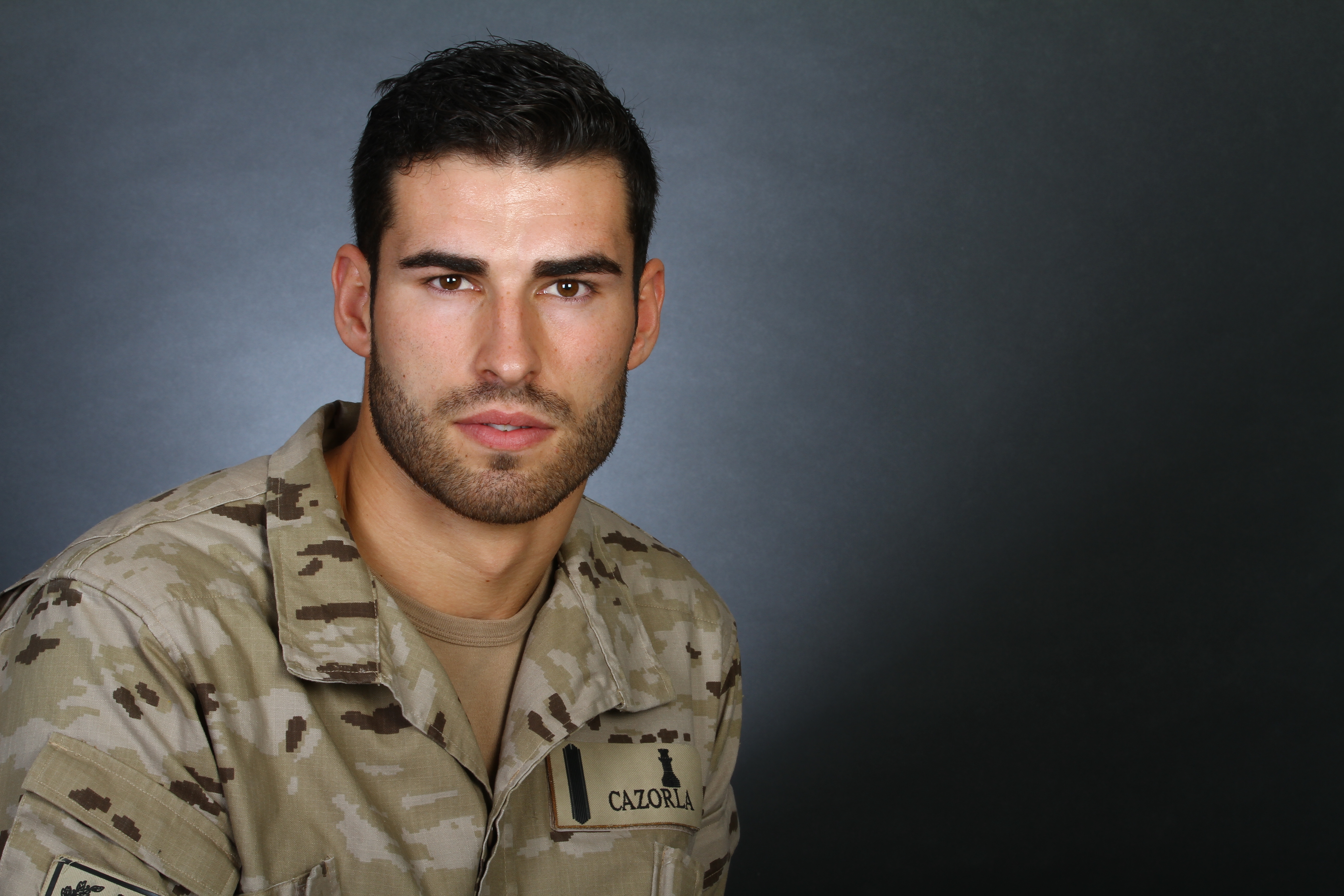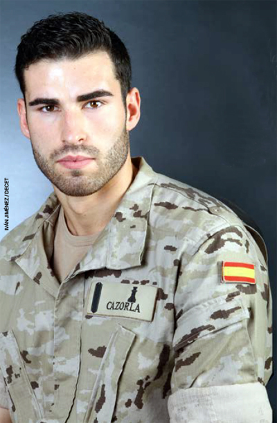Al soldado Cazorla, destinado en la Brigada Acorazada Guadarrama XII en la Base de El Goloso, con su 1,93 de altura se le ve venir desde lejos. Lo que más sorprende de él es su naturalidad y lo bien que se defiende ante los medios, a pesar de su juventud.